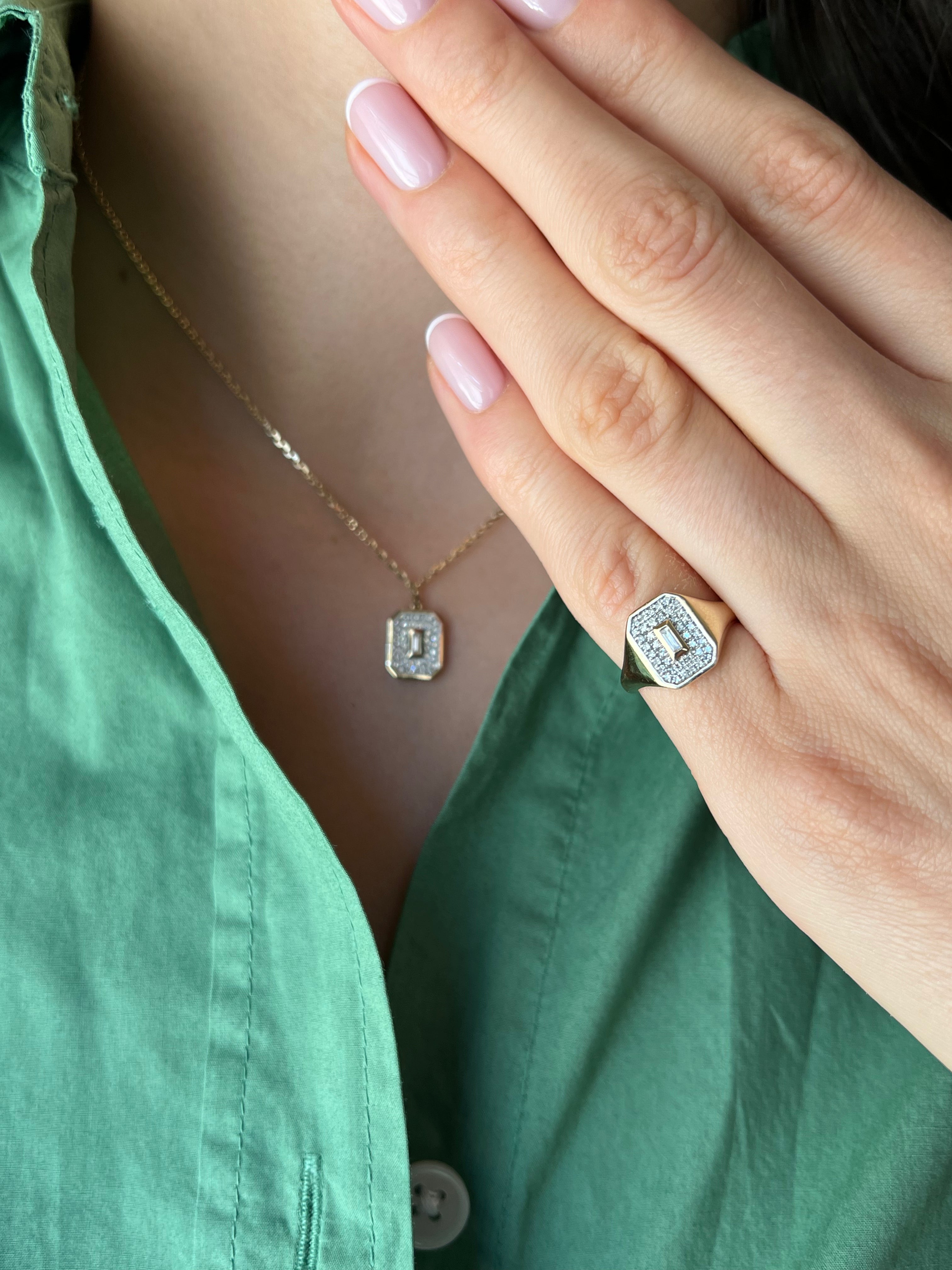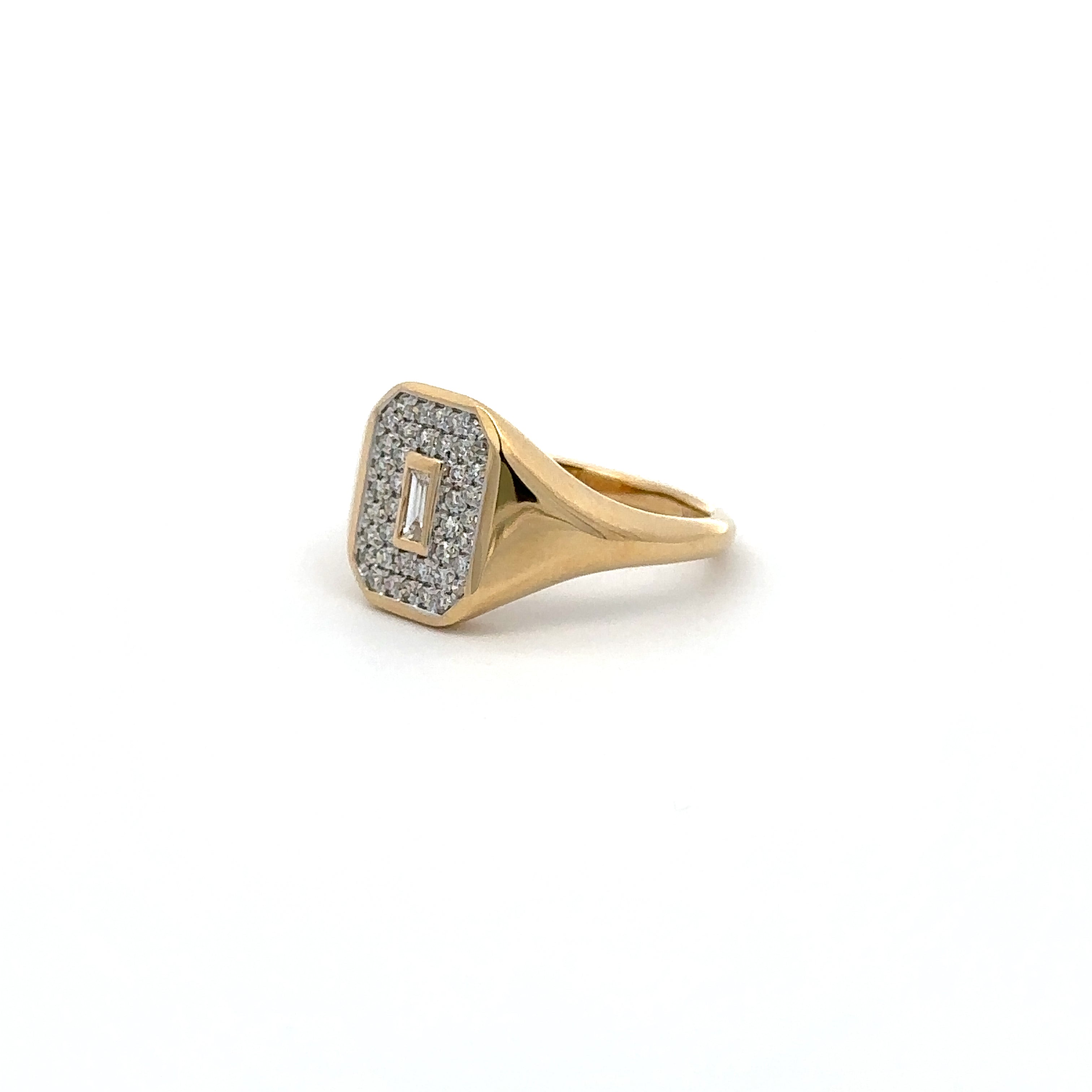 14K Yellow Gold Baguette & Round Brilliant Diamonds Signet Ring