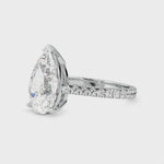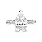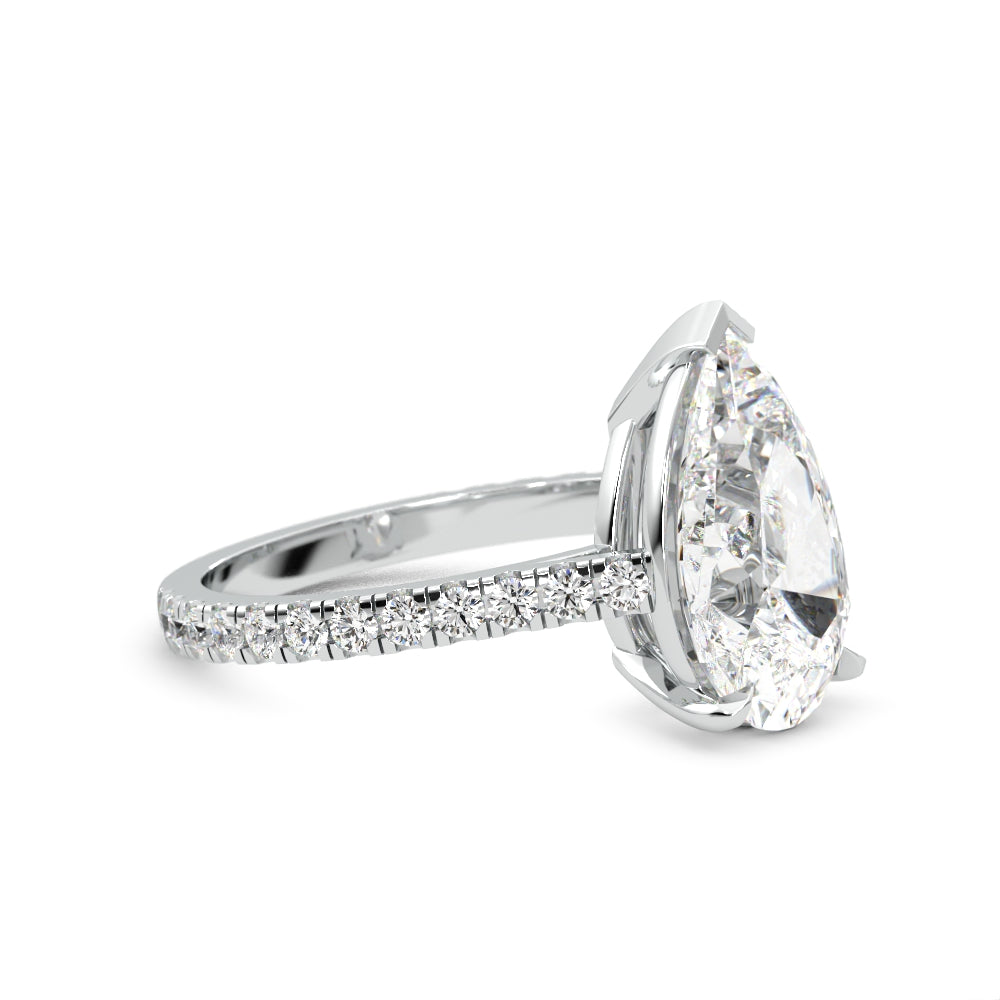 This simple yet sophisticated design features a pear-cut diamond set in a classic three-claws medium to high setting crafted in platinum.